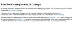 As already mentioned, mechanical wear causes the removal of the piping material from the inner wall surface. The consequences of the damage [ATVM143-1:1989] are: - Increase of the roughness of the walls with, for example, reduction in the hydraulic effectiveness;