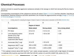 Internal corrosion is caused by aggressive substances already in the sewage or which form during the flow by means of chemical processes. Corresponding concentrations of the substances and low pH values (Tabelle 2.6.3.2.1) low flow velocities, long flow periods, high temperatures, bacterial influences and other parameters can increase the aggressiveness strongly (Bild 2.6.3.2.1) (Bild 2.6.3.2.1) (Bild 2.6.3.2.1). (Table: Limiting values for evaluating …