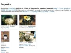 According to [DIN4046], deposits are caused by gravitation of settled out materials (Bild 2.3.2.1) (Bild 2.3.2.1) (Bild 2.3.2.1) (Bild 2.3.2.1). If deposits are not regularly removed, they can become more or less strongly fixed due to their compositions and the course of time (Bild 2.3.2.1) (Bild 2.3.2.1) (Bild 2.3.2.1). | (Image: Hardened deposits [FI-IfK]) | (Image: Sewer blockage caused by deposits [FI-KMG]) | | (Image: Hardened deposits - Sewer filled … |