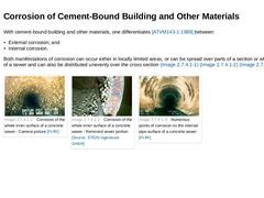 With cement-bound building and other materials, one differentiates [ATVM143-1:1989] between: - External corrosion; and