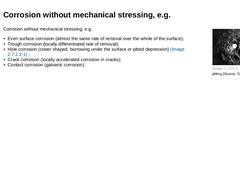 (Image: Hole corrosion - pitting) Corrosion without mechanical stressing, e.g. - Even surface corrosion (almost the same rate of removal over the whole of the surface);