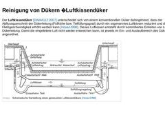 Der Luftkissendüker [DWAA112:2007] unterscheidet sich von einem konventionellen Düker dahingehend, dass der Abflussquerschnitt der Dükerleitung (Füllhöhe bzw. Teilfüllungsgrad) durch ein sogenanntes Luftkissen reduziert und damit die Fließgeschwindigkeit erhöht werden kann [Hosan1998]. Dieses Luftkissen entsteht durch kontrolliertes Einleiten von Luft in die Dükerleitung. Damit die eingeleitete Luft nicht wieder entweichen kann, ist jeweils im Ein- …