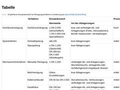 (Tabelle: Empfohlene Einsatzbereiche für Reinigungsverfahren)
