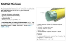 The minimum wall thickness of the composite (ec,min) shall be at least 80 % of the design thickness (plus the thickness of any abrasion layer) or 3 mm, whichever is greater […