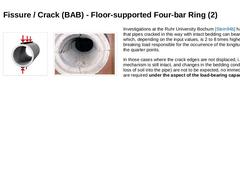 Rigid pipes show longitudinal cracks caused by an exceedance of the ring bending tensile strength, e.g. due to line bedding (line support). In addition, longitudinal cracks can also be formed caused by positional deviations as a consequence of changes in the bedding due to leakage or soil displacements/earthwork. (Video: Development of a longitudinal crack as …