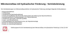 Die Vortriebsleistungen von Mikrotunnelbauverfahren mit hydraulischer Förderung unterliegen folgenden Einflussfaktoren: -