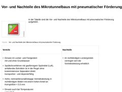 (Bild: Plus/Minus) In der Tabelle sind die Vor- und Nachteile des Mikrotunnelbaus mit pneumatischer Förderung aufgeführt. (Tabelle: Vor- und Nachteile des Mikrotunnelbaus mit pneumatischer Förderung) |