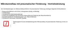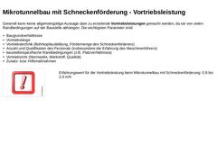 Generell kann keine allgemeingültige Aussage über zu erzielende Vortriebsleistungen gemacht werden, da sie von vielen Randbedingungen auf der Baustelle abhängen. Die wichtigsten Parameter sind: -