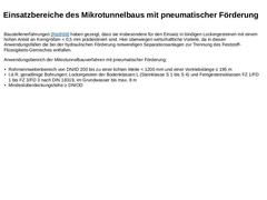 Anwendungsbereich der Mikrotunnelbauverfahren mit pneumatischer Förderung: |