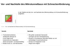 (Bild: Plus/Minus) In der Tabelle sind die Vor- und Nachteile des Mikrotunnelbaus mit Schneckenförderung aufgeführt. (Tabelle: Vor- und Nachteile des Mikrotunnelbaus mit Schneckenförderung) |