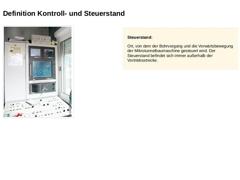 (Bild: Kontroll- und Steuerstand) Steuerstand: Ort, von dem der Bohrvorgang und die Vorwärtsbewegung der Mikrotunnelbaumaschine gesteuert wird. Der Steuerstand befindet sich immer außerhalb der Vortriebsstrecke.