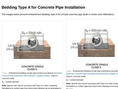 For concrete pipes, there are four installation types as per [[American Concrete Pipe Association Recommended Standard Installations]], which provide an optimum range of soil-pipe interaction characteristics. These four types of installations vary with the type of material (based on soil characteristics) and level of compaction, and the material utilized in constructing the four principal zones surrounding the lower half of the pipe (middle bedding, … |