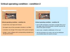 Critical operating conditions of an EPB shield can occur even through small deviations of balance conditions, with excavation chamber overpressure as well as with under-pressure. Causes of critical operating states: -