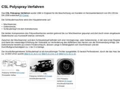 Das CSL Polyspray-Verfahren wurde 1984 in England für die Beschichtung von Kanälen im Nennweitenbereich von DN 225 bis DN 1000 entwickelt [FI-Costa] .