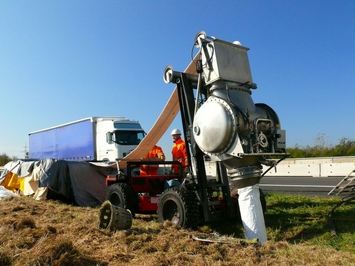 Die Chip-Unit inversiert den Synthesefaserliner mit Luftdruck in das zu sanierende Rohr (Quelle: Insituform GmbH)