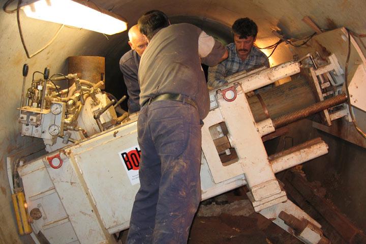 Eines der Stahlbetonvortriebsrohre für den Basiskanal wurde zu diesem Zweck in das Werk nach Alsdorf gebracht und stand dort für Tests zur Verfügung um das Handling der Maschine unter den beengten Verhältnissen zu optimieren. Parallel dazu wurden umfangreiche Versuche mit unterschiedlichen Bohrköpfen durchgeführt, um keine Überraschungen mit dem Boden zu erleben. Der Einbau der Filterrohre wurde getestet und die Bohrmannschaften hatten ausgiebig Gelegenheit, sich mit der Maschinentechnik vertraut zu machen. Ziel war es, sich trotz - oder gerade wegen des knappen Zeitrahmens, intensiv und optimal auf den Einsatz vorzubereiten.