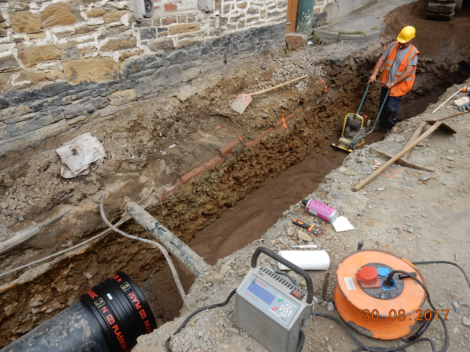 Das lokal ansässige Tiefbauunternehmen verfügt über jahrzehntelange Erfahrung im Tief- und Straßenbau und konnte seine Leistungsfähigkeit sowie Zuverlässigkeit bereits bei verschiedensten anspruchsvollen Baumaßnahmen in Altena unter Beweis stellen. Dass man auch trotz jahrzehntelanger Erfahrung nicht auslernt, zeigte sich insbesondere bei dieser Baumaßnahme, denn Erfahrungen mit dem Schweißen von Kunststoffrohren und Formteilen auf Basis der Heizwendelschweißtechnik gehörten bisher nicht zum Tagesgeschäft des Tiefbauunternehmens.