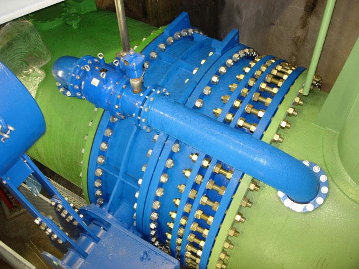 Die Rurtalsperre Schwammenauel in der Nordeifel, nahe der Stadt Heimbach, zählt mit Ihrem Stauvolumen von 203 Mio. m³ zu einer der größten Talsperren in Deutschland. Nach mehr als 65 Jahren Betrieb mussten die Armaturen am Grundablass der Rurtalsperre ausgetauscht werden. Die vorhandenen Ringventile wurden gegen leistungsstärkere Kegelstrahlschieber ersetzt.