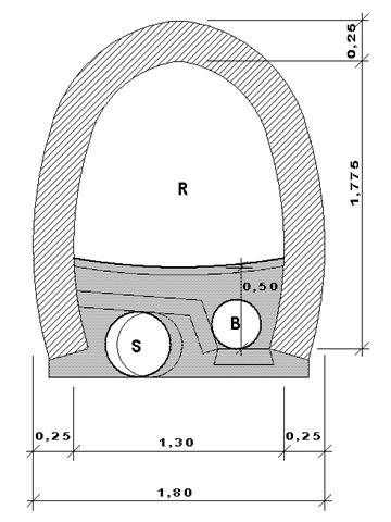 Dies könnte entweder durch eine "innenliegende Lösung" oder durch die Errichtung eines Bachkanals außerhalb des R-Kanals erfolgen. Zur Ableitung des Trockenwetterabflusses reicht ein Kanal in der Nennweite DN 300 aus. Bei Regenereignissen kann das Bachwasser über einen vorgeschalteten Notüberlauf in den R-Kanal mit eingeleitet werden.