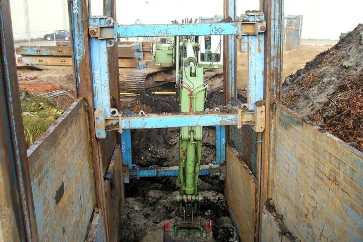 "Die Sanierungsmaßnahme umfasste im Wesentlichen die Baustelleneinrichtung und die Errichtung von Zu- und Ausfahrt, das Kappen und Umlegen diverser Versorgungsleitungen, eine Baufeldräumung auf verschiedenen Teilflächen, den Bodenaushub im Schutz von Verbaukästen sowie den Materialtransport in ein Zwischenlager, wo der Bodenaushub für die Endlagerung aufbereitet wurde", erläutert Bauleiter Dipl.-Ing. Carsten Hillmer von der Heinrich Weseloh Straßen- und Tiefbau GmbH. Nach der Bodenentnahme wurden die Baugruben jeweils wieder verfüllt und verdichtet. Laut Ausschreibung sollte der Bodenaustausch in der gesamten Sanierungsbaugrube im Schutz von mobilen Verbauelementen durchgeführt werden. Sie sollten dem Doppelgleitschienen-Verbausystem entsprechen und - so die Auflage des Bauherrn - Aushubtiefen von mindestens 8,50 m unter Geländeoberkante (GOK) sicher zulassen. Darüber hinaus war eine Typenzulassung für Erddrücke bis mindestens 120 kN/m2 gefordert.