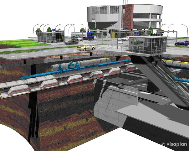 Durch die unterirdische Streckenführung kann CargoCap uneingeschränkt erweitert werden und damit die Transportkapazität steigern.