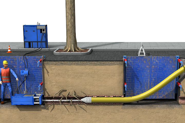 - oft nicht begehbarer, unterirdischer Arbeitsbereich,