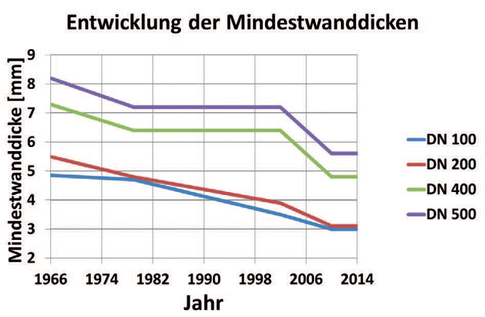Im Jahr 1979 zeigte die internationale Norm ISO 2531 [13] einen Weg auf, mit dem sich geringere Wanddicken kohärent in eigenen K-Klassen darstellen ließen: