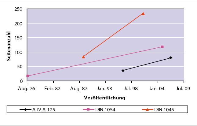 Trotz dieser neuen Entwicklungen ist die Zunahme des Umfangs der DWA-A 125 noch als moderat zu bezeichnen (Bild 1). Die Richtlinie DVA-A 125/DVGW 304 liegt mit Stand Februar 2007 im Gelbdruck vor. Die Einspruchsfrist läuft bis zum 15.05.2007.