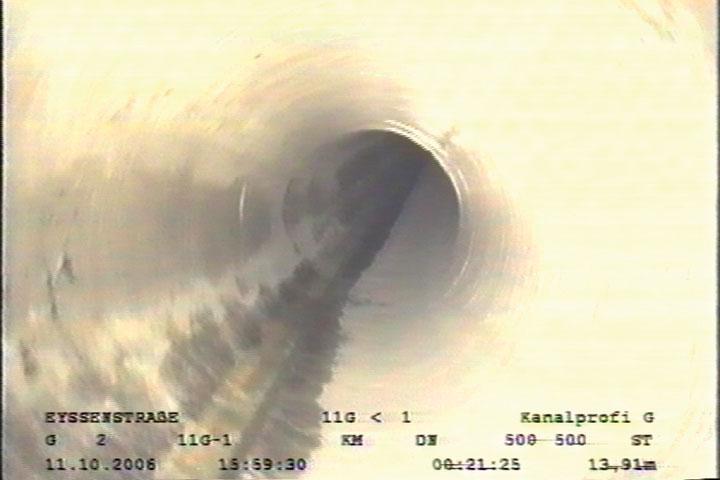 Im Rahmen der flächendeckenden Kanaluntersuchung, die für das gesamte Kanalsystem der Stadt Frankfurt im Jahr 2005 abgeschlossen wurde, sind die Dükerleitungen in 2002 im abwasserfreien Zustand inspiziert worden. Hierbei wurde festgestellt, dass sich die bituminöse Innenbeschichtung der Stahlrohre nahezu vollständig abgelöst hat und beginnende Korrosion bereits punktuell zu eindringendem Mainwasser geführt hat.