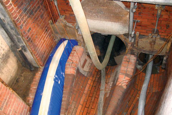 Doch auch für erfahrene Firmen hat jedes Projekt seine Herausforderungen. Sämtliche Bauaktivitäten greifen ineinander und müssen sorgfältig aufeinander abgestimmt werden, um Stillstandszeiten zu vermeiden. Besonders die erfolgreiche und termingerechte Durchführung der Vorarbeiten brachte die Bauleiter der Firma Insituform so einige Male zum Schwitzen, denn die Dükerleitungen waren in vorgegebenen Zeitfenstern abwechselnd nacheinander leer zu pumpen, zu reinigen und mit einer TV - Kamera zu befahren. Beim Leersaugen der Leitungen musste im hydraulisch machbaren Grenzbereich gearbeitet werden. Es waren Saughöhen von über 15 Metern zu bewältigen und der tiefste Punkt der Dükerleitungen lag in ca. 40 Metern Entfernung vom Saugfahrzeug.