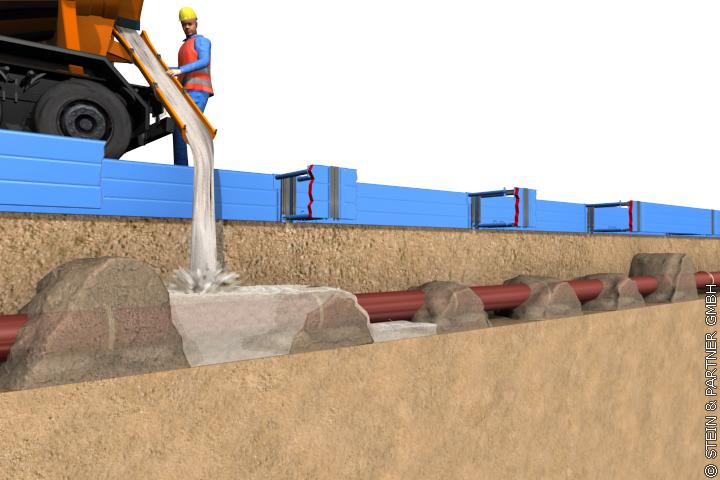 - Vermeidung typischer Verlegefehler/Schadensursachen, die bei konventioneller Verlegung auftreten können (z.B. unzureichende Zwickelverfüllung und verdichtung, Punktauflagerung der Rohrleitung, zu hohe Verdichtungsauflasten, Verwendung von nicht fachgerechten Baustoffen etc.