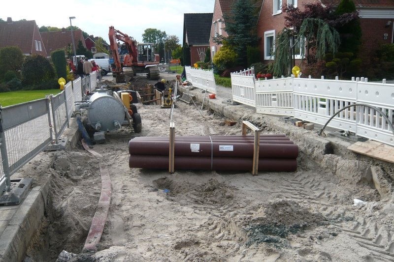 Deshalb werden Abschnitte des städtischen Kanalnetzes überall dort, wo die baulichen Rahmenbedingungen es zulassen, konsequent erneuert. Etwa dann, wenn entsprechende Schadensbilder vorliegen oder hydraulische Mindestvoraussetzungen nicht mehr erfüllt werden. So auch bei einer Tiefbaumaßnahme im Helmsweg und im Esklumer Fährweg, wo die H. Schmidt GmbH im Auftrag der Stadtwerke eine neue Regenwasser- und Schmutzwasserkanalisation hergestellt hat. Auftraggeber und Planer haben sich dabei für das HS®-Kanalrohrsystem der Funke Kunststoffe GmbH entschieden. Neben HS®-Kanalrohren in blau (Regenwasser) und braun (Schmutzwasser), die für die Erstellung der Sammler und Hausanschlussleitungen genutzt wurden, kamen weitere Bauteile wie die HS®-Abwasserkontrolle oder die VPC®-Rohrkupplung zum Einsatz. Der Systemcharakter der aufeinander abgestimmten Komponenten des modernene Kanalrohrsystems konnte dabei ebenso überzeugen, wie die einfache und flexible Handhabung der Rohre und Formteile an der Einbaustelle.