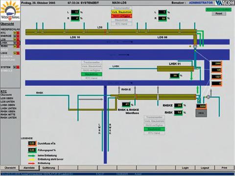 - zentrales Steuerungssystem zur Ermittlung der Soll-Werte, basierend auf gemessenen und prognostizierten Messwerten einschlieslich Online-Niederschlags- und -Abflussvorhersage.