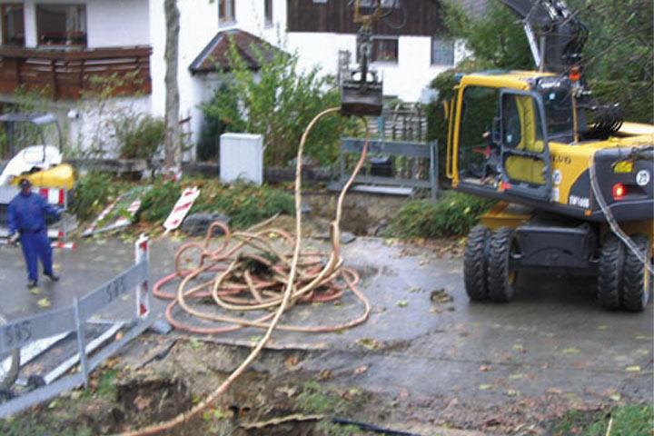 Die Neukabel können direkt in die Alttrasse und damit ins Erdreich, aber auch in Schutzrohre oder perforierte Schutzrohre eingezogen werden.