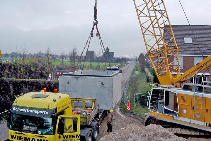 Zum Einsatz kamen 31 Stahlbetonprofile mit Rechteckquerschnitt. Die 5,75 m breiten und 3,70 m hohen Rechteckprofile sind 2,5 m lang und wiegen rund 44 t. Neben den großen Dimensionen ist ein bautechnisches Merkmal besonders erwähnenswert. Die Profile verfügen mit der so genannten aktivierbaren Dichtung über eine Technologie, die bei Westrohr entwickelt worden ist. "Die Idee der aktivierbaren Dichtung entstand aus den zum Teil leidvollen Erfahrungen mit der herkömmlichen Dichtungstechnologie", erläutert Dipl.-Ing. Erich Valtwies, Geschäftsführer Westrohr Betonwerk Münster GmbH & Co. KG.