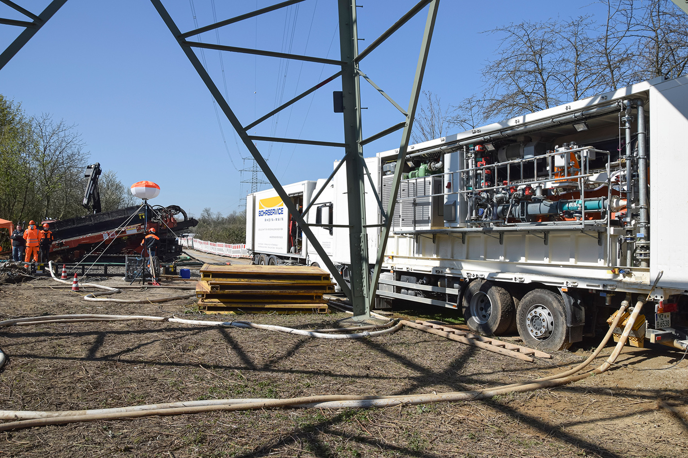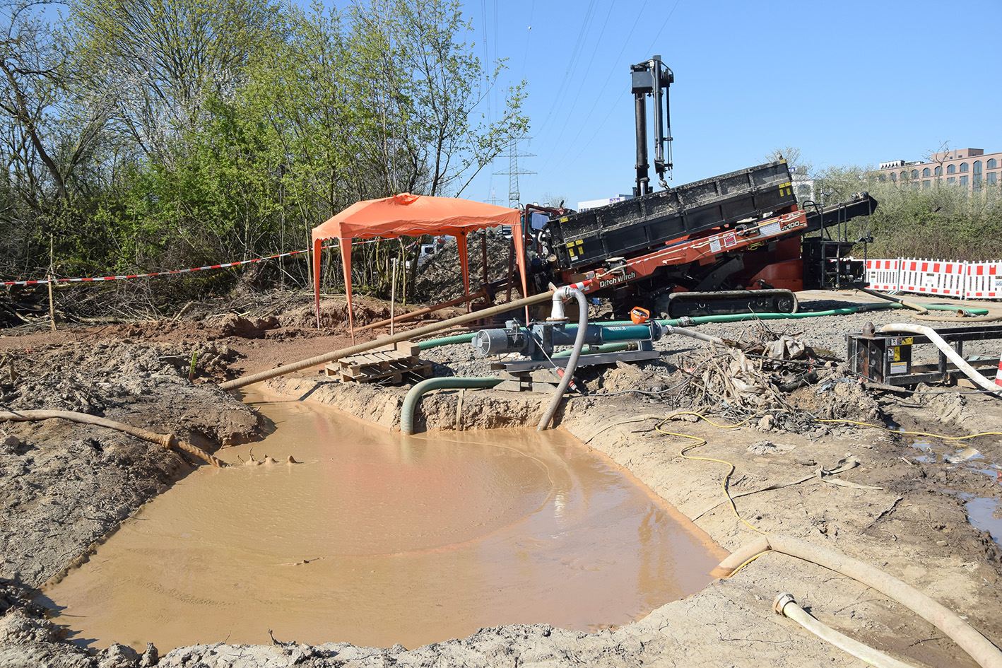 Die beiden unmittelbar nacheinander durchgeführten Pilotbohrungen erfolgten zügig und plangemäß innerhalb nur weniger Tage. Trotz der mitunter schwierigen Bodenverhältnisse – im Leistungsbereich waren sowohl teilweise bindige Böden als auch Sand und Kies vorzufinden – verliefen auch die Aufweitbohrungen ohne weitere Komplikationen oder Verzögerungen.