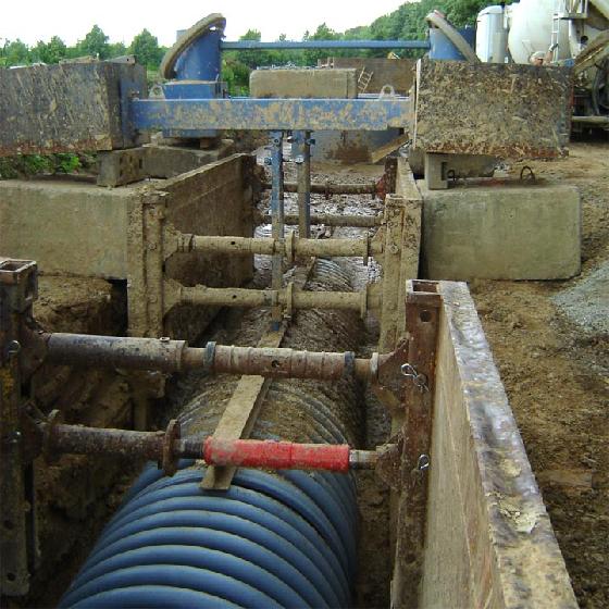 In den letzten Jahrzehnten hat es im Bereich der Kunststoffrohrsysteme zahlreiche Innovationen gegeben, gerade die bauku GmbH hatte mit Entwicklungen wie PROFILEEN - safe oder PROFILEEN - drain clean einen maßgeblichen Anteil an diesem Fortschritt. Auf dem Gebiet der Einbauverfahren und der Einbaumaterialien für Kanalrohrsysteme tat sich dagegen lange Zeit nichts, bis vor kurzem das Schlagwort "Flüssigboden" in immer mehr Vorträgen und Fachartikeln auftauchte. Beschäftigt man sich näher mit der Begriffsdefinition so stellt man schnell fest, dass es sich nicht um eine genormte Bezeichnung handelt und dass Produkte verschiedener Hersteller völlig unterschiedliche Eigenschaften haben. Die bauku stellte sich der Herausforderung und sammelte erste Erfahrungen in der statischen Auslegung der Produkte und dem praktischen Einsatz vor Ort. Da eine solche Pionierarbeit eine enge Abstimmung zwischen Rohrproduzent und Flüssigbodenlieferant erforderte, fiel die Wahl auf den Flüssigboden der Firma rss.