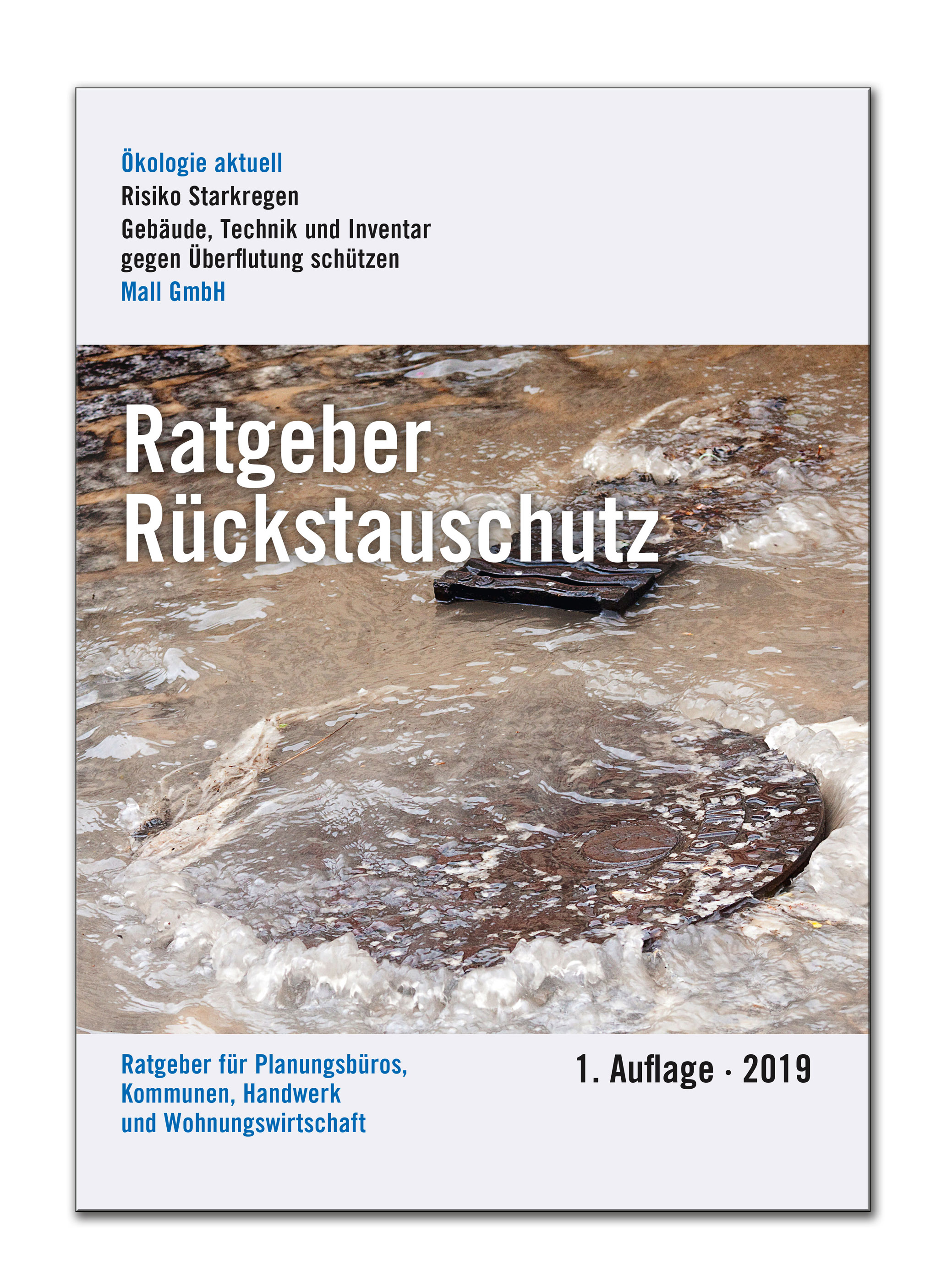 Risiko Starkregen – Gebäude, Technik und Inventar gegen Überflutung schützen Ratgeber für Planungsbüros, Kommunen, Handwerk und Wohnungswirtschaft Herausgeber: Mall GmbH, Donaueschingen, 1. Auflage 2019 ISBN 978-3-00-060966-4, Preis: 15,00 EUR, Bezug: www.mall.info