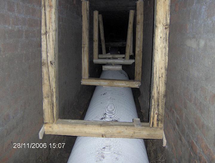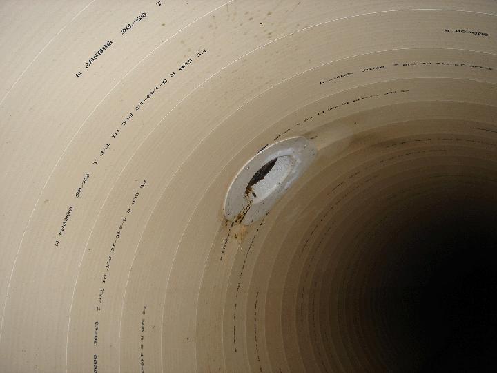 - Der Sammler war teilweise bis 70 % mit Industrieabfällen und Sand verschmutzt, so dass 4 Wochen lang Reinigungsarbeiten vor dem eigentlichen Einbau des SWPWickelrohres erforderlich waren. Die dreiköpfige Sanierungsmannschaft konnte erst danach mit der eigentlichen Arbeit beginnen.