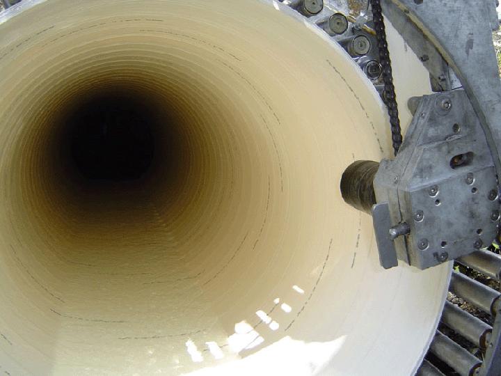 - kontrollierte Produktion des Rohres mittels Wickelmaschine vom Schacht aus