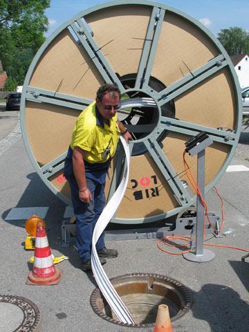 Der Ablauf und das Ergebnis der Sanierungsarbeiten in Göggingen haben Auftraggeber und Planer überzeugt. Nach dem Erreichen des Zielschachtes war die durchfahrene Haltung mit einem glattwandigen PVC-Rohr vollständig ausgekleidet und die Wickelmaschine konnte geborgen werden. In einem weiteren Arbeitsgang öffnete ein Arbeiter die Hausanschlussleitungen. Sie werden üblicherweise verspachtelt oder mit Hutmanschetten eingebunden. Die abschließende Überprüfung der Dichtigkeit bescheinigte die 100-prozentige Funktionstüchtigkeit des sanierten Kanalabschnittes. Entsprechend positiv fällt das Fazit des Auftraggebers aus. Neben dem reibungslosen und schnellen Bauablauf wird die Zusammenarbeit mit einem Unternehmen wie DIRINGER & SCHEIDEL, das als einer der wenigen Hersteller ein umfassendes Programm an Sanierungstechniken anbietet, besonders hervorgehoben. Dieser Umstand sowie das vorhandene Fachwissen tragen nach Meinung der Beteiligten wesentlich dazu bei, die für eine Sanierungsmaßnahme technisch optimale und wirtschaftlich vernünftige Variante auszuwählen.