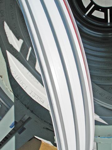 Zu Beginn der Baumaßnahme haben die Fachleute von DIRINGER & SCHEIDEL die Baustelleneinrichtung installiert. Neben einem Reinigungsfahrzeug und dem Werkzeugwagen gehört der Überwachungswagen mit der TV-Kamera dazu. "Nach einer gründlichen Reinigung der Haltung und weiteren Vorbereitungsarbeiten wie dem Anpassen von Muffenversätzen wurden die Hausanschlüsse eingemessen", schildert D & S-Bauleiter Stephan Oeder den Ablauf vor Ort. Der Hersteller lieferte das Endlosprofil auf einer großen Spindel zur Baustelle. Je nach Profilstärke und Nennweite befinden sich bis zu 2 400 m auf einer Rolle. Bei der Sanierung eines Altrohres mit einer Nennweite von DN 900 reicht das für eine Strecke von rund 75 m. Neben Uhrzeit und Herstellungsdatum trägt das Profil eine spezielle Kennzeichnung mit Angaben zu Schlossbreite und Steghöhe. Zusätzlich ist ein Längenmaß aufgedruckt.