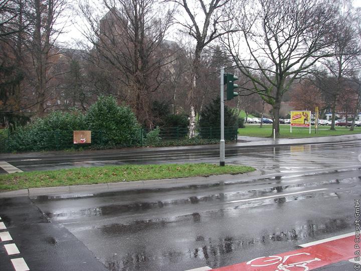 Der betrachtete Sanierungsabschnitt bestand aus vier Haltungen mit einer Gesamtlänge von rd. 166 m, wobei der größte Teil (rd. 126 m) im Straßenraum liegt und durch ein sehr hohes Verkehrsaufkommen gekennzeichnet ist (s. Bild 2 a und b). Der restliche Teil (rd. 40 m) befindet sich unterhalb einer Grünanlage. Der zu sanierende Altkanal weist in der Trasse zwei 90°-Bögen auf. Die Sohltiefen des Kanals liegen gemäß den Kanalbestandsdaten zwischen 3,50 m und 5,00 m unter GOK.