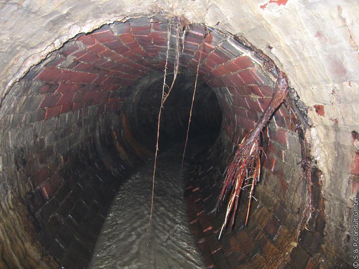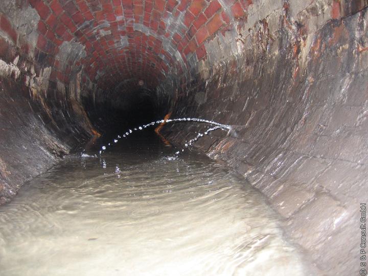 Im Rahmen der Begehung durch S & P im Oktober 2005 wurde der Ist-Zustand des Regenwasserkanals DN 1000 aufgenommen: