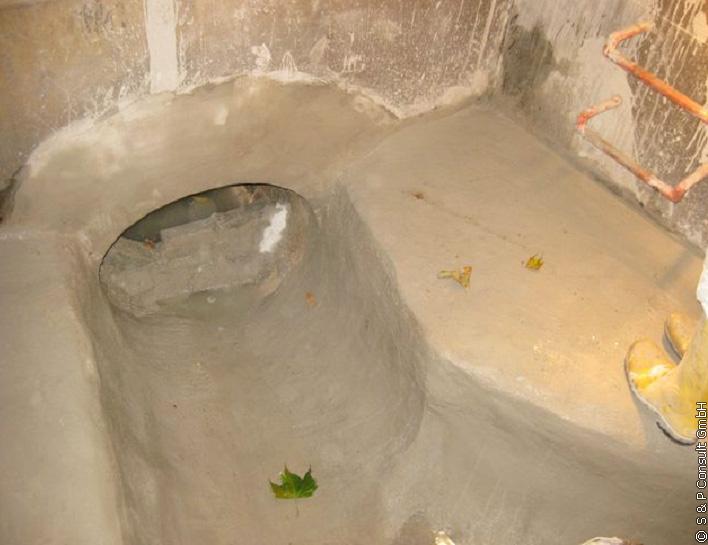 Eine nachhaltige und wie in DIN EN 752-5 [2] geforderte ganzheitliche Sanierung der Entwässerungssysteme muss sich auch auf die Schächte erstrecken. Ansonsten besteht die Gefahr, dass sich nach Abschluss der Sanierungsarbeiten die bekannten technischen, ökologischen und ökonomischen Folgen der schadhaften Abwasserkanäle in den Bereich dieser Bauwerke verlagern. In Anbetracht dieser Tatsache wurden im Rahmen der Kanalsanierungsarbeiten die Schächte mitsaniert. Hierbei wurden Steigeisengänge ausgewechselt sowie die Gerinne und Bermen wiederhergestellt (s. Bild 12).