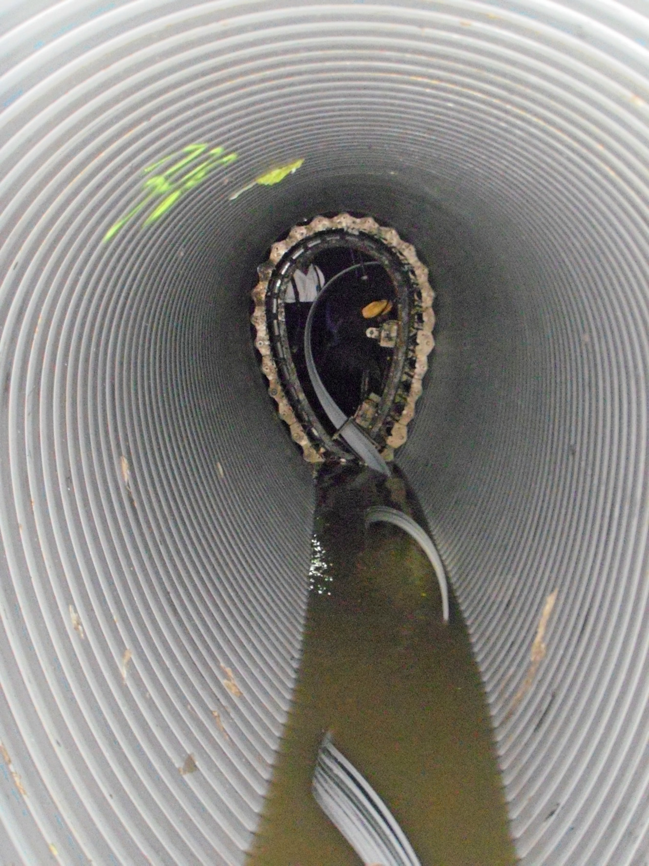 Langfristig bietet das sanierte Rohr einen wichtigen betrieblichen Pluspunkt: Da das stahlverstärkte Kunststoffwickelrohr keine temporäre Einbauhilfe ist, sondern fester konstruktiver Bestandteil der Sanierungslösung bleibt, schützt es das Altrohr und den eingebrachten Ringraummörtel dauerhaft vor mechanischem Verschleiß und vor Angriffen des Michwassers. Letztlich dient der SPR™-Wickelrohrliner also als Schalung für eine neue mineralische Verfüllung des Altkanals und im Betrieb als langjährig zuverlässige Schutzbeschichtung, die das Betonbauwerk vom Mischwasser trennt. Die glatte und gut abriebbeständige Oberfläche des SPR™-Liners erhöht die Hydraulik für mindestens die nächsten 50 Jahre Dauerbetrieb und kompensiert den minimalen Querschnitt-Verlust des Altrohres.