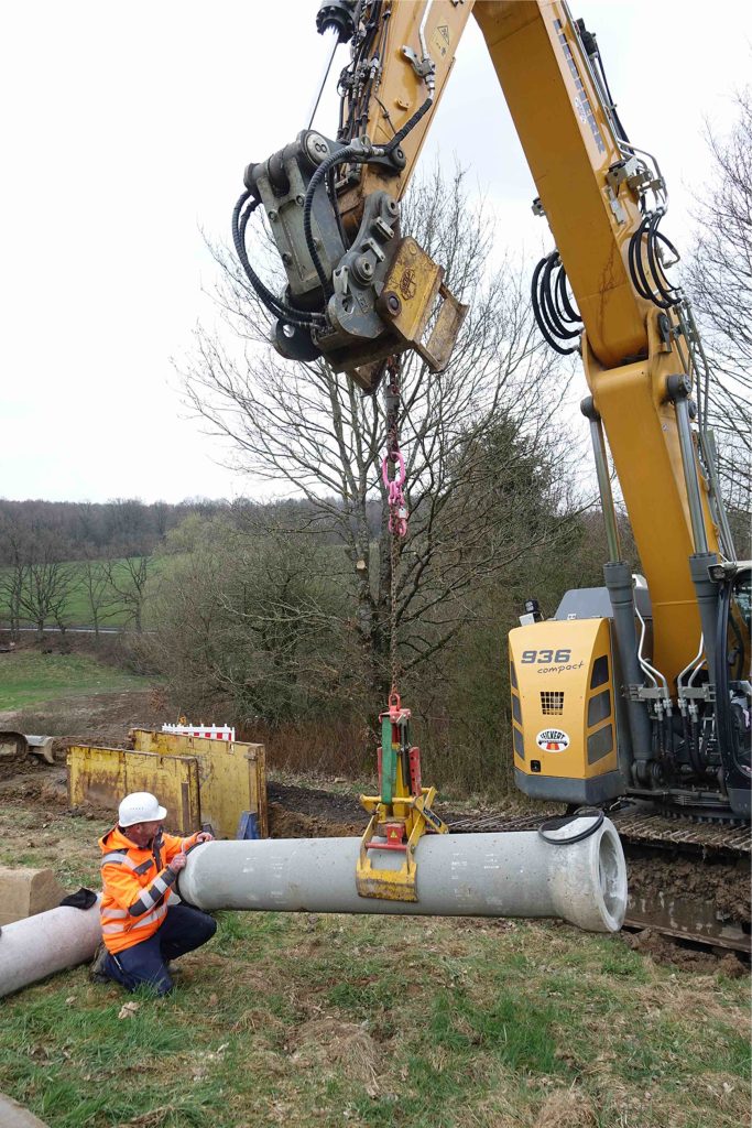 Auch die eingesetzten Kanalrohre sind ein Resultat einer guten „Partnerschaft“. Verlegt wird nämlich das FABEKUN®-Kanalrohrsystem, das aus Beton und Kunststoff besteht und somit die Stärken zweier Werkstoffe verbindet. „Rund 5.200.000 m³ Abwasser fallen jedes Jahr im Bereich der rheinland-pfälzischen Verbandsgemeinde Hachenburg an“, erklärt Nikolai Puderbach von Fischer Teamplan Ingenieurbüro GmbH aus Koblenz, das die Planung aufgestellt hat und die Bauausführung überwacht.