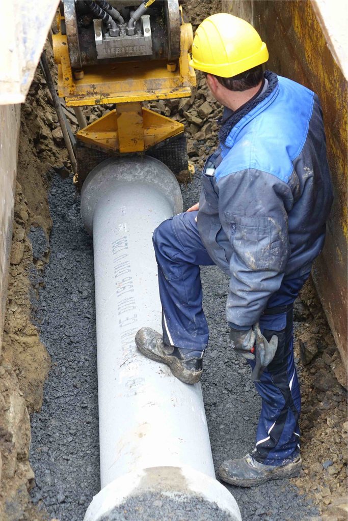Mit den Fortschritten auf der Baustelle sind die Beteiligten sehr zufrieden, wie Jan Kohlhauer vom Bereich Bauabwicklung bei der Walter Feickert GmbH zusammenfasst: „Zurzeit werden täglich etwa 15 Meter Kanal verlegt. Dabei sind zwei Bagger im Einsatz. Einer hebt den Graben aus, legt das Rohr ein und verdichtet, der andere verfüllt. Die Verlegetiefe beträgt zwischen 3,0 und 4,50 Metern.“