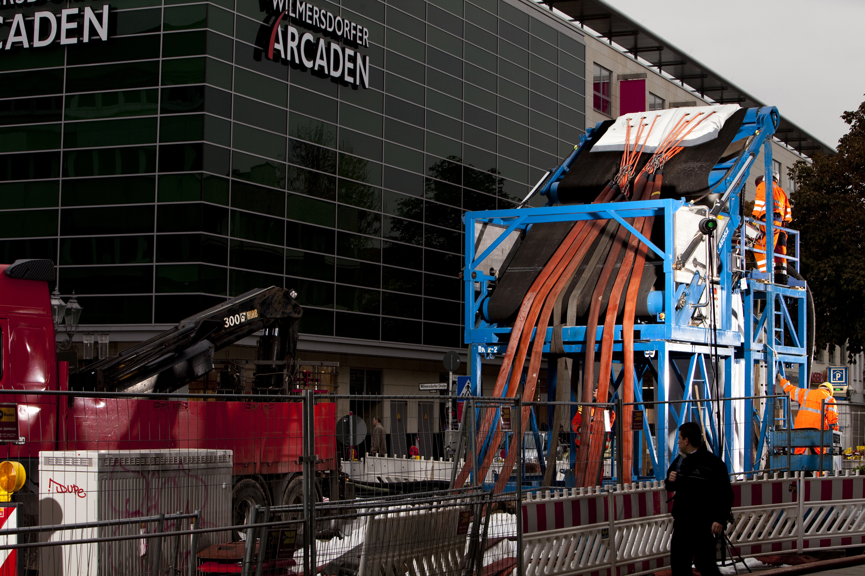 Berlin, Wilmersdorfer Straße: Einzug der Heizschläuche via Förderband. [Quelle: Aarsleff Rohrsanierung GmbH]