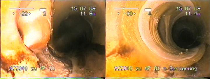 Außer in Trinkwasserschutzgebieten oder bei drohender Fremdwasserinfiltration werden die Stutzen bei der Sanierung daher gerne ausgelassen. "Nicht so schlimm", behaupten viele, mit den Linern komme man dicht genug an den Mündungsbereich heran, das reiche in der Regel aus. Das stimmt so nicht ganz. Gerade bei längeren Rohrstrecken ist die exakte Berechnung des Liners auf Grund seiner Eigenstreckung nur schwer möglich. Das Ergebnis: Die Liner ragen in das jeweils andere Rohrstück hinein und müssen in einem weiteren Arbeitsgang aufwändig nachgefräst werden. Oder sie enden weit vor der Mündung und überdecken nicht die neuralgisch gefährdete Anschlussmuffe des Stutzens.